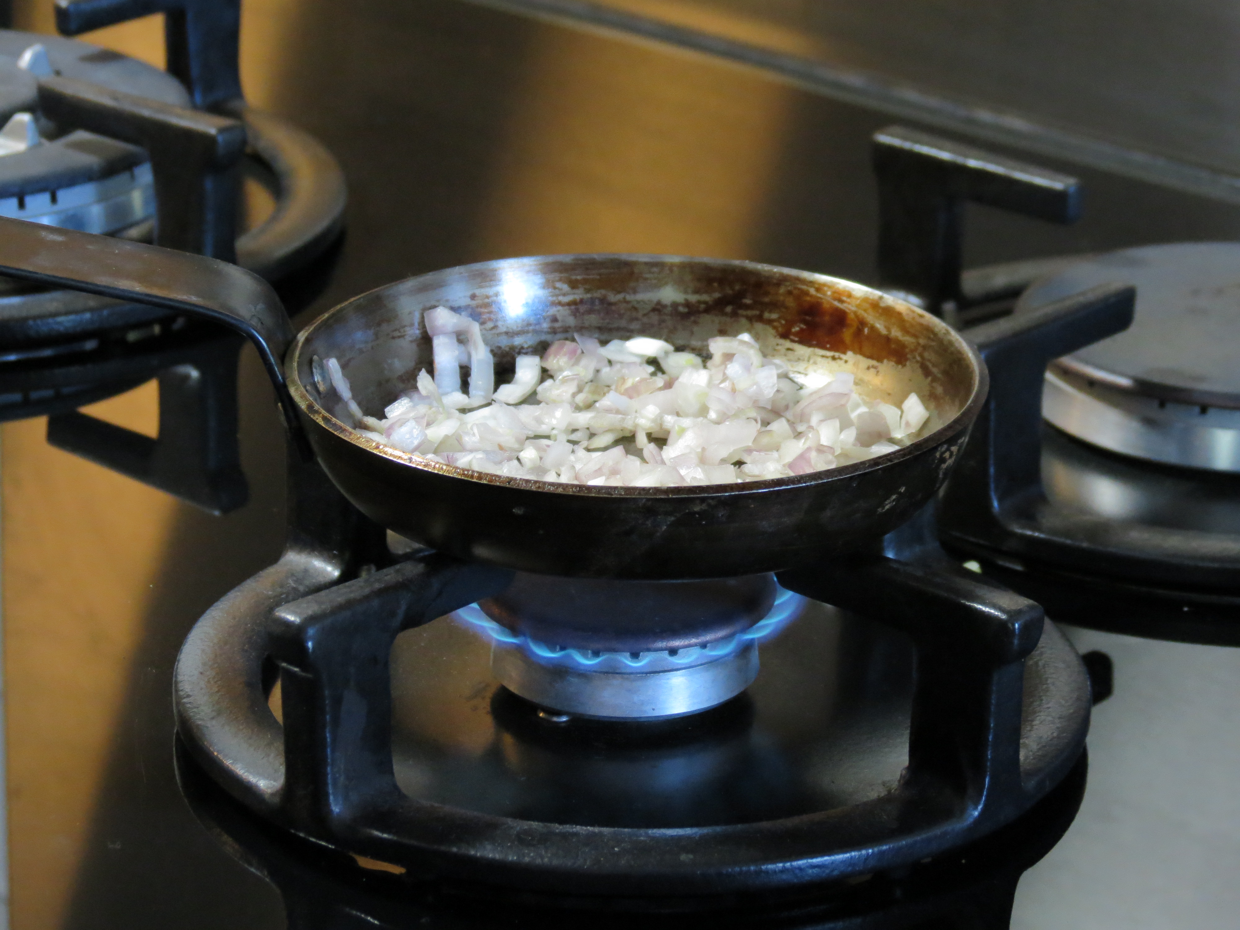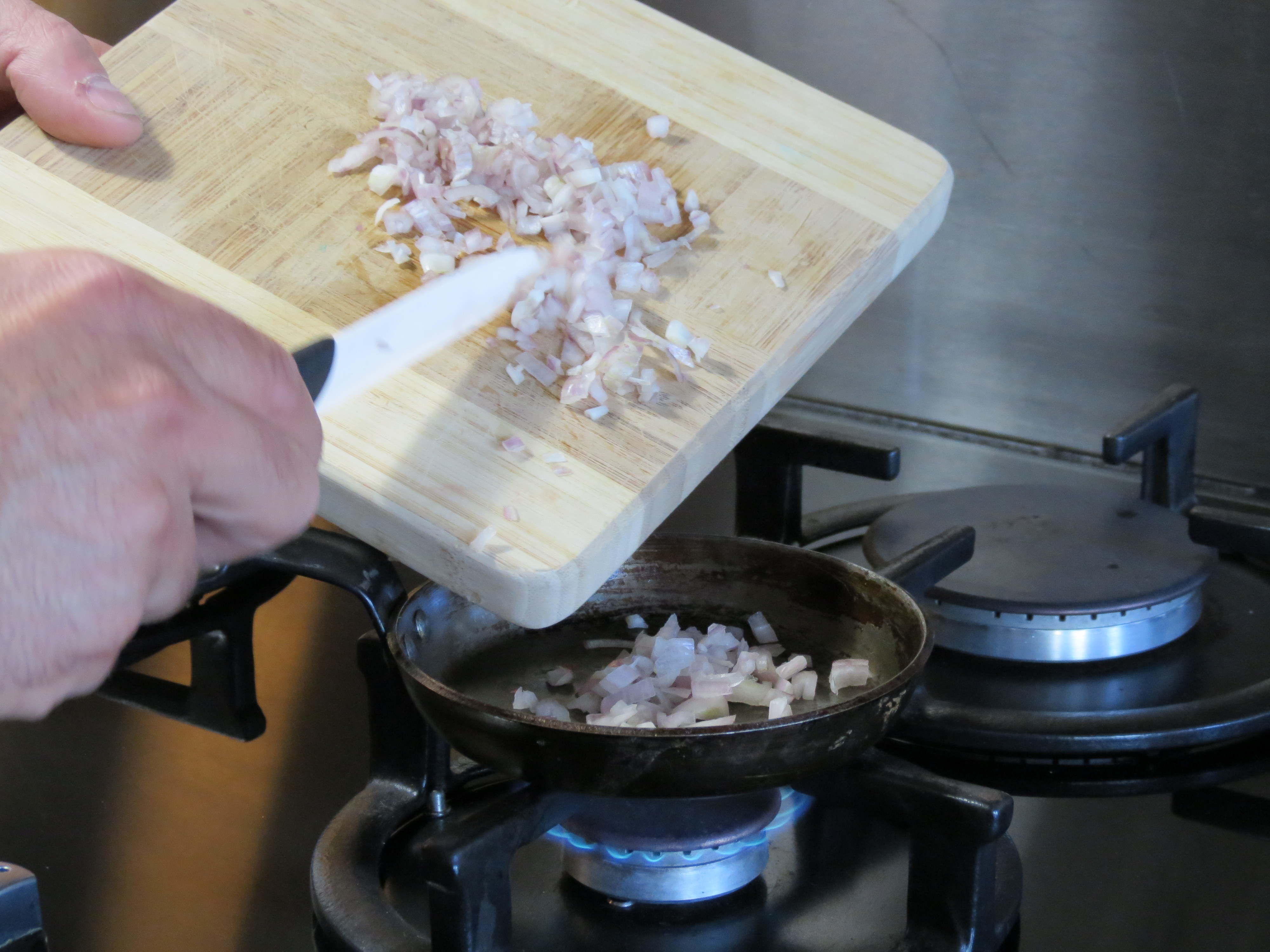 3. Après quelques secondes de préchauffage, faites revenir votre échalote dans la poêle.